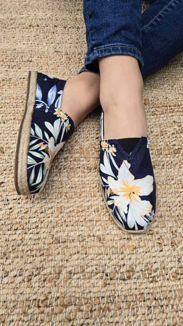 Tela exterior poliester, forro tela algodon, suela de caucho natural,yute natural.