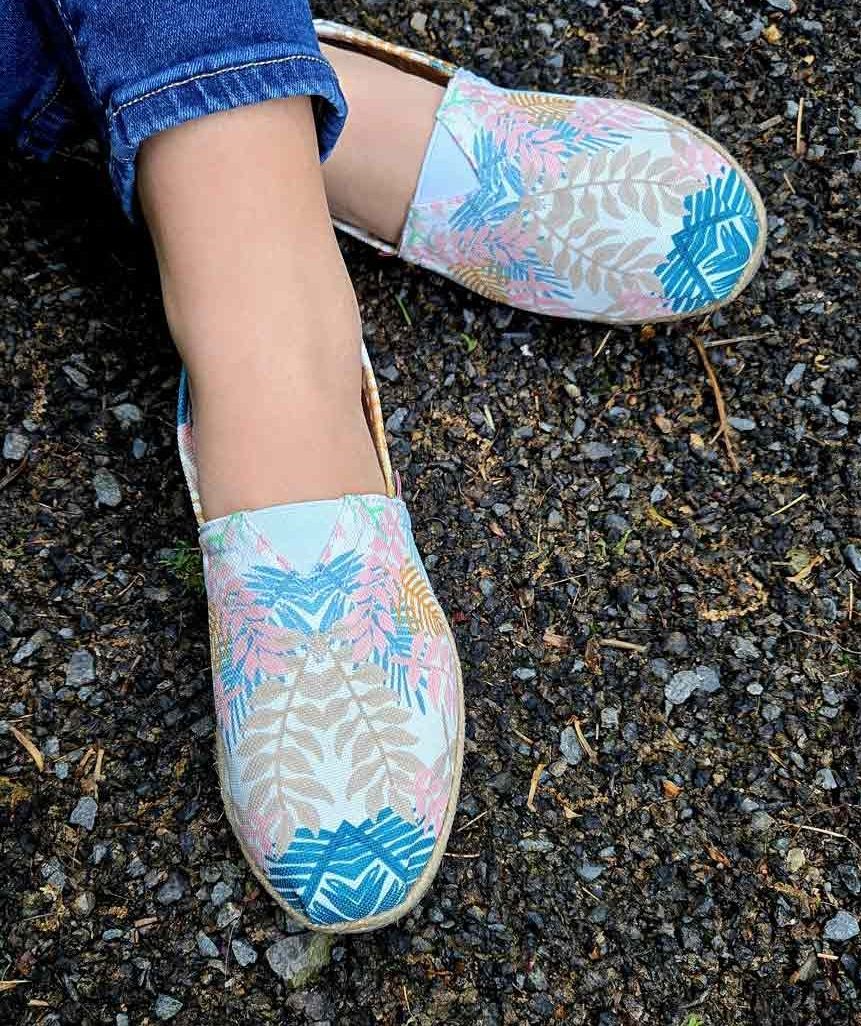 Tela exterior poliester, forro tela algodon, suela de caucho natural,yute natural.